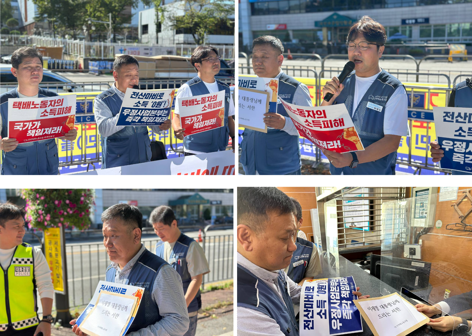 우체국 택배노조가 국정자원 화재 피해를 호소하는 기자회견을 열었습니다. 10월 16일 오전 11시, 용산 대통령실 앞에서 진행됐습니다. 9월 26일 화재로 전산 마비가 발생해 PDA 먹통과 분류 작업이 중단됐습니다. 9월 30일 동서울집중국에서 물량이 인당 5개로 줄어 350여 명이 일하지 못했습니다. 추석·연말 성수기 수입이 사라져 건당 수수료 노동자들이 망연자실합니다. 우정사업본부는 소상공인 피해에만 대응하며 노동자 보상을 외면했습니다. 김광석 위원장은 재난 피해 전가 비판, 이승원 본부장은 보상 촉구했습니다. 이재명 대통령께 서한을 통해 차별 없는 구제를 호소했습니다. Postal Delivery Union held press conference decrying NIA fire damages. October 16, 11 AM, Yongsan Presidential Office front. September 26 fire caused system outage; PDA blackout, sorting halted. September 30, Dongseoul hub: per-worker volume dropped to 5 items, idling 350 workers. Chuseok-year-end peak earnings vanished, leaving piece-rate couriers devastated. Postal HQ addressed small biz losses only, ignoring workers. Chair Kim Kwang-seok slammed victim-blaming; HQ Chief Lee Seung-won demanded compensation. Letter to President Lee Jae-myung pleads for equitable relief. #우체국택배 #국정화재 #피해보상