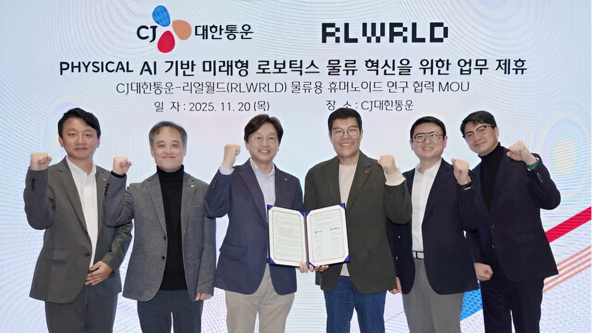 CJ대한통운이 피지컬 AI 전문기업 리얼월드와 손잡고 물류용 AI 휴머노이드 개발에 속도를 냅니다. 23일 양사는 '물류용 로보틱스 파운데이션 모델(RFM)' 공동 개발 MOU를 체결하고 CJ대한통운은 리얼월드 시드2 라운드 투자에도 참여했습니다. CJ대한통운은 실제 물류센터 작업 데이터와 자동화 공정을 제공하고 리얼월드는 이를 기반으로 시각·언어·센서 통합 RFM과 고정밀 로봇핸드 제어 기술을 개발합니다. 이종훈 경영지원실장은 "미래 물류 경쟁력은 AI 브레인 보유 여부에 달렸다"며 로봇 하드웨어 기업 협력에 이어 소프트웨어·AI 두뇌까지 확보해 물류센터 자율운영체제 전환을 가속화하겠다고 밝혔습니다. CJ Logistics teams up with physical AI startup RealWorld to fast-track logistics humanoid robots. Announced Nov 23, they signed an MOU for joint development of a Robotics Foundation Model (RFM) for logistics, with CJ joining RealWorld's Seed-2 round. CJ supplies real-world warehouse data and automation tasks; RealWorld builds vision-language-sensor fused RFM plus precision robot hand control. Exec Lee Jong-hoon says future logistics dominance hinges on advanced AI brains, and this completes their stack—hardware partners plus cutting-edge software—to accelerate fully autonomous warehouse ops. #CJ대한통운 #리얼월드 #AI휴머노이드