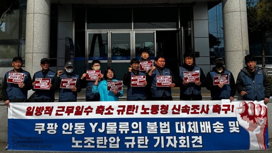 전국택배노동조합은 쿠팡 안동지역에서 불법 다단계 재하청 구조와 부당노동행위가 자행되고 있다며 이를 강력 규탄하고 국토교통부와 고용노동부의 특별조사를 촉구했습니다. 노조에 따르면 안동지역 쿠팡 택배기사들은 쿠팡CLS를 원청으로 하고 모벤티스, YJ물류를 거치는 4단계 다단계 위탁 구조 속에서 이중 수수료가 공제되어 심각한 저단가 노동을 강요받고 있으며, 이는 생활물류서비스산업발전법상 1단계 재위탁 범위를 초과한 현행법 위반 소지가 있다는 것입니다. 또한 중간업체 모벤티스가 일반운송사업자라면 화물자동차법상 50% 직접운송 의무를 위반했을 가능성도 제기했습니다. 노조 측은 택배기사들이 노동조합을 결성하자 YJ물류가 근무일수를 일방적으로 축소해 월 100만 원 이상의 임금을 삭감하고, 합법적 부분파업에 대체인력을 투입하는 불법 대체배송을 자행했으며 부당해고와 허위 신고 등 노조 탄압을 이어가고 있다고 주장했습니다. 이에 따라 노조는 오는 4월 1일 오전 9시 40분 국회 소통관에서 진보당 윤종오 원내대표실과 공동으로 기자회견을 열고 원청 쿠팡CLS의 관리감독 책임과 국토부·노동부의 철저한 특별조사를 촉구할 예정입니다. The National Parcel Delivery Workers’ Union has strongly condemned what it calls illegal multi-level subcontracting and unfair labor practices in Coupang’s Andong region, demanding a special investigation by the Ministry of Land, Infrastructure and Transport and the Ministry of Employment and Labor. According to the union, Coupang delivery workers in Andong are trapped in a four-tier subcontracting structure — Coupang CLS as the primary contractor, followed by Moventis and YJ Logistics — resulting in double commission deductions and severe low-wage labor. The union claims this structure exceeds the one-level re-subcontracting limit allowed under the Living Logistics Service Industry Development Act and may violate the Motor Vehicle Transport Business Act’s 50% direct transport obligation. The union further alleges that after workers formed a union, YJ Logistics unilaterally reduced working days without increasing commissions — effectively cutting monthly wages by over one million won — and engaged in illegal replacement delivery during a lawful partial strike, along with unfair dismissals and false reports to suppress the union. In response, the union will hold a joint press conference with Progressive Party lawmaker Yoon Jong-oh on April 1 at 9:40 a.m. at the National Assembly Communication Hall to demand accountability from Coupang CLS and prompt special investigations by the relevant ministries. #전국택배노동조합 #쿠팡택배 #쿠팡안동 #택배노조 #다단계재하청 #부당노동행위 #노조탄압 #국토교통부 #고용노동부 #택배노동자 #Coupang #ParcelWorkers #LaborRights #택배파업