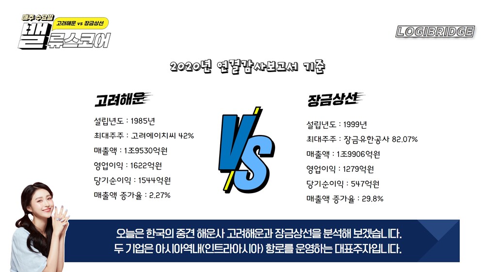 김 : 오늘은 한국의 중견 해운사 고려해운과 장금상선을 분석해 보겠습니다.