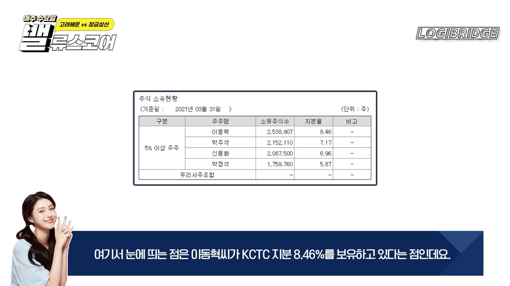 여기서 눈에 띄는 점은 이동혁씨가 KCTC 지분 8.46%를 보유하고 있다는 점인데요.