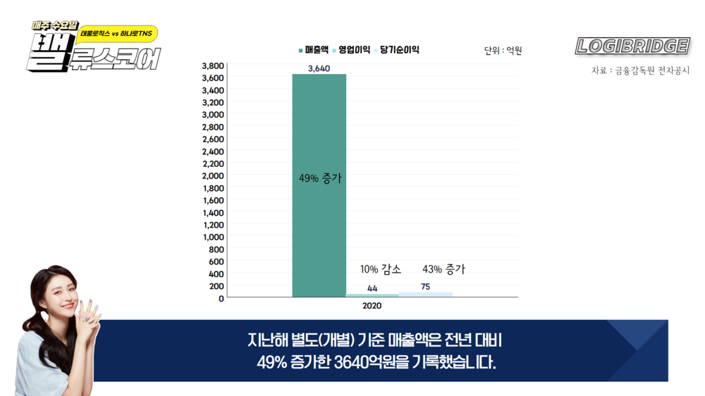 지난해 별도(개별) 기준 매출액은 전년 대비 49% 증가한 3640억원을 기록했습니다.