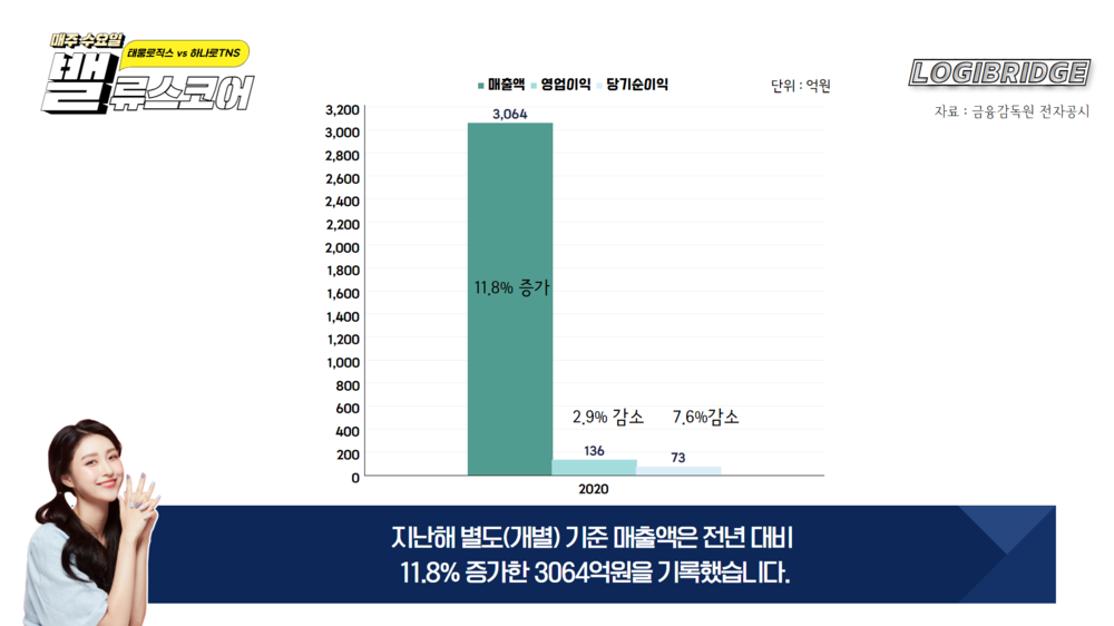 지난해 별도(개별) 기준 매출액은 전년 대비 11.8% 증가한 3064억원을 기록했습니다.