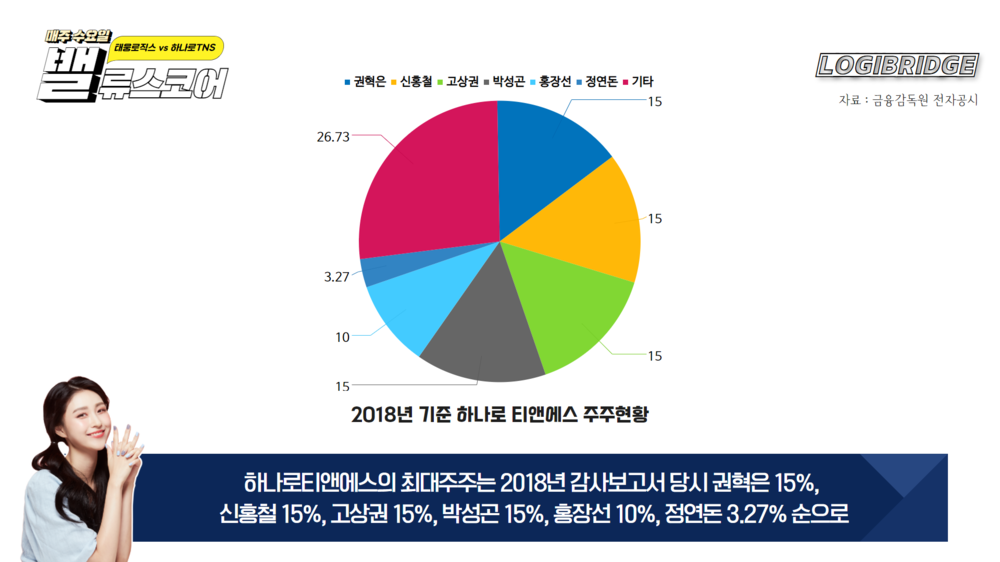 하나로티앤에스의 최대주주는 2018년 감사보고서 당시 권혁은 15%, 신홍철 15%, 고상권 15%, 박성곤 15%, 홍장선 10%, 정연돈 3.27%, 기타 26.73%로 하나로티앤에스 설립(삼성출신) 멤버로 추정되는 인물들이 지분을 골고루 쥐고 있었습니다.