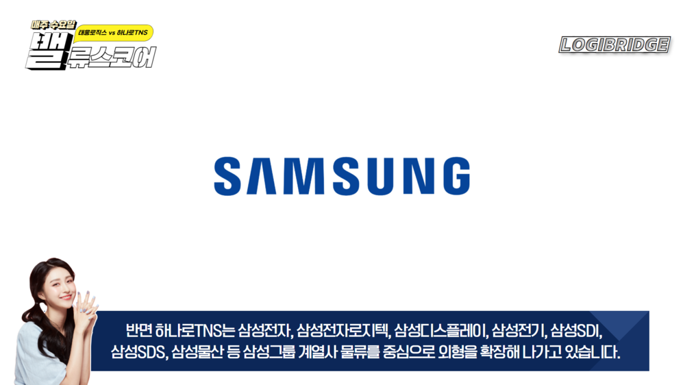 반면 하나로TNS는 삼성전자, 삼성전자로지텍, 삼성디스플레이, 삼성전기, 삼성SDI, 삼성SDS, 삼성물산 등 삼성그룹 계열사 물류를 중심으로 외형을 확장해 나가고 있습니다.