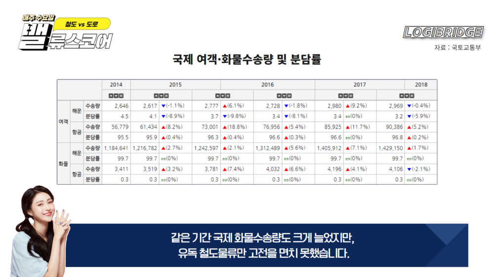 같은 기간 국제 화물수송량도 크게 늘었지만, 유독 철도물류만 고전을 면치 못했습니다.