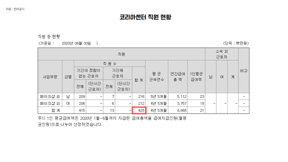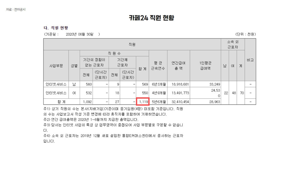 그러니까, 카페24 영업비용에서 가장 큰 비중을 차지하는 부분은 급여고, 코리아센터는 상품 및 원재료 매입인데요. 작년 2019년 말과 비교해 올해 상반기까지 직원 증감률만 보더라도, 카페24는 코리아센터에 비해 상대적으로 더 많은 직원 채용을 하고 있습니다.