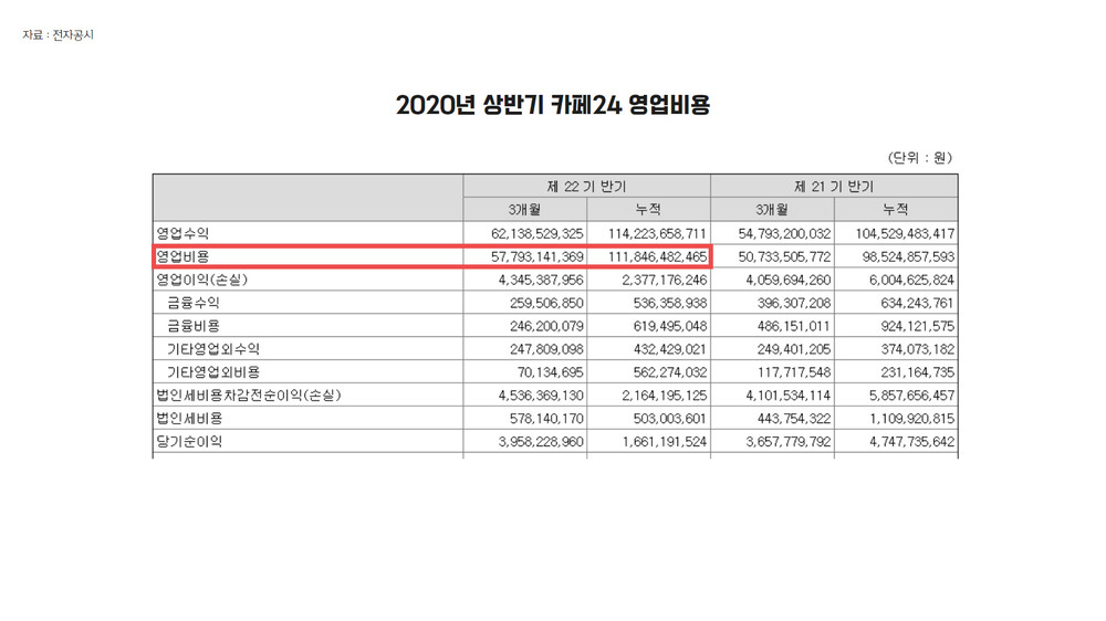 ●카페24와 코리아센터 영업비용