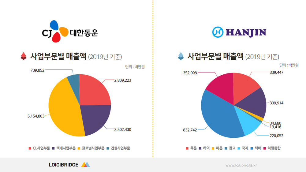 ◆박 : 한진은 2015년 대비 2019년 1.5% 국내 매출 비중 올랐습니다. 이것은 선택과 집중이 아닌 어쩔 수 없는 선택입니다. 대한통운은 2013년 CJ GLS와 합병하고 목표를 설정해서 2020년 글로벌 물류기업이 되겠다는 방향을 갖고 좋게 가고 있었습니다. 코로나는 어쩔 수 없는 이슈였습니다. 당연히 영향은 있겠죠. 다만 방향성은 좋고 좋게 흘러가고 있었다고 보입니다. 한진의 선택과 집중은 잘 이해가 안 됩니다.
