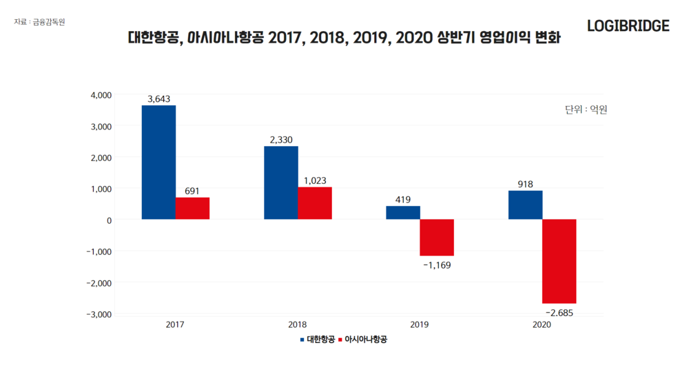 ◇박 : 반면 영업이익은 대한항공과 아시아나항공 두 기업이 조금 다른 양상입니다. 대한항공은 나름 선방한 반면, 아시아나항공 영업손실은 2600억원대로 130% 가까이 늘었습니다.