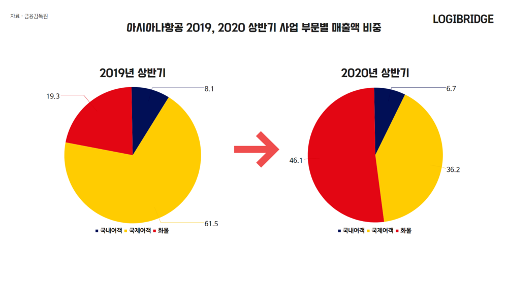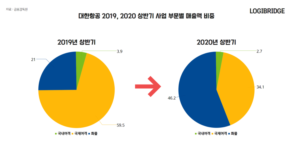 ◇박 : 보시다시피, 아시아나항공과 대한항공 양사의 올해 상반기 매출 비중은 항공화물 부문이 큰 폭으로 늘었습니다.