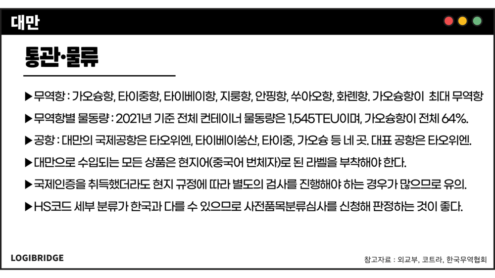 지속적인 군사압박과 대만에 대한 중국의 견제가 지속될 경우 공급망의 피해가 예상되며 물류에 악영향을 피할 수 없을 것으로 생각됩니다.