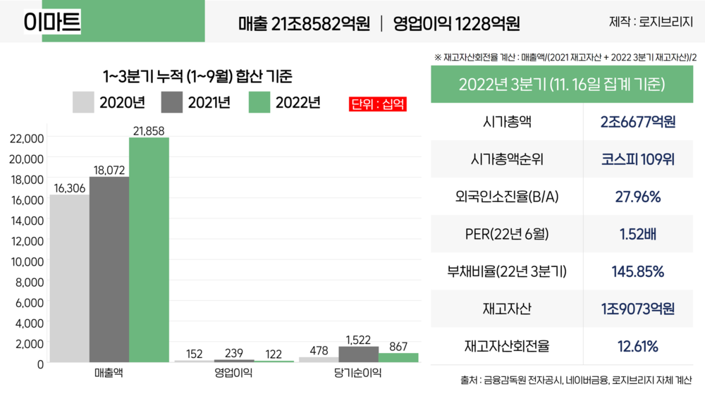 ※ 최근 2022년 3분기 유통·IT(커머스) 기업들의 실적발표가 이어지는 가운데, 저희는 상장사를 중심으로, 1~9월 누계 실적을 합산하여 최근 3년 간 각 기업의 성장과 이익 증감, 그리고 재고자산의 회전율을 조금 더 상세하게 분석해 봤습니다. (순서는 유사한 업종별로 랜덤하게 배열)