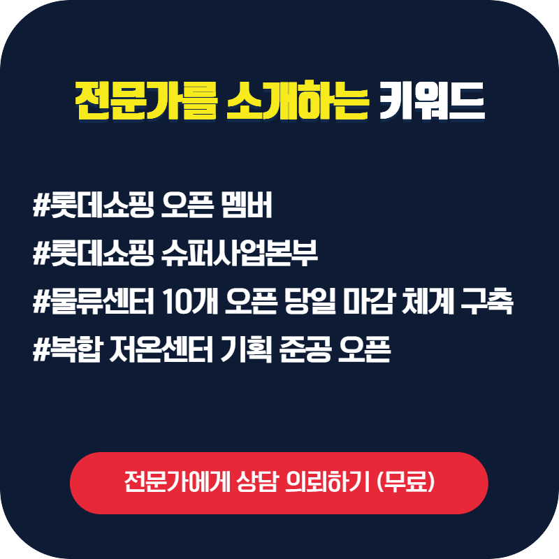 #롯데쇼핑 오픈 멤버 #롯데쇼핑 슈퍼사업본부 #물류센터 10개 오픈 당일 마감 체계 구축 #복합 저온센터 기획 준공 오픈