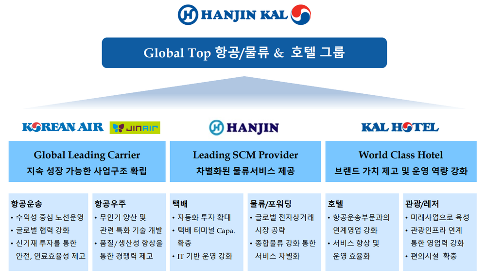 한진그룹 사업은 크게 항공, 육운, 관광 호텔 레저 부동산, 정보서비스, 비영리법인, 해외법인 등으로 나뉩니다.