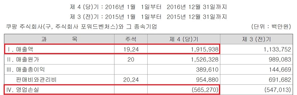 엄청난 속도로 매출 규모를 키웠지만, 영업적자도 상당합니다.