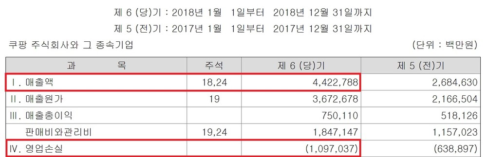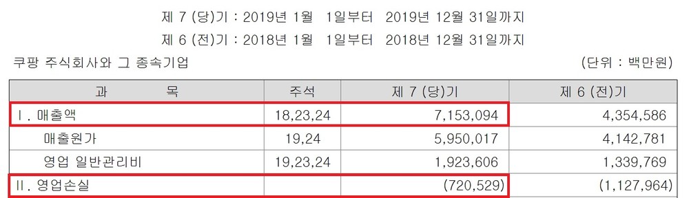쿠팡은 2016년 -5652억원, 2018년 -1조970억원, 2019년 -7205억원의 영업적자를 기록했습니다.