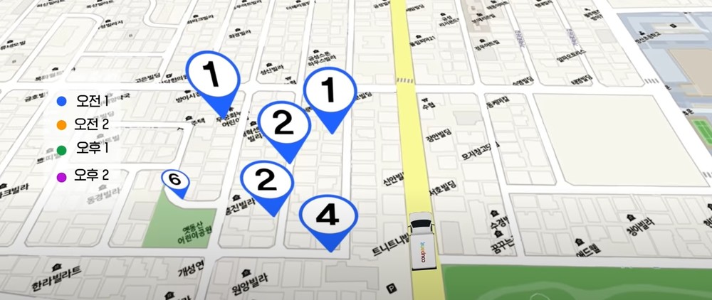 동시에 쿠팡맨들이 운전하기 좋은 최적의 경로를 계산하기 때문에 연간 수억개 이상의 주문과 익일, 새벽, 당일배송이 가능하다고 밝혔습니다.