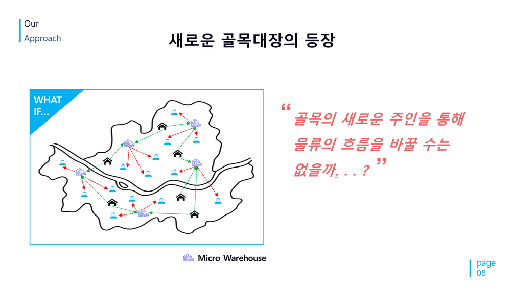 또 동음이의어로 골목이라는 뜻도 가지고 있습니다. 쉽게 이야기하면 골목 안에 마이크로 풀필먼트 센터를 만들 생각입니다.