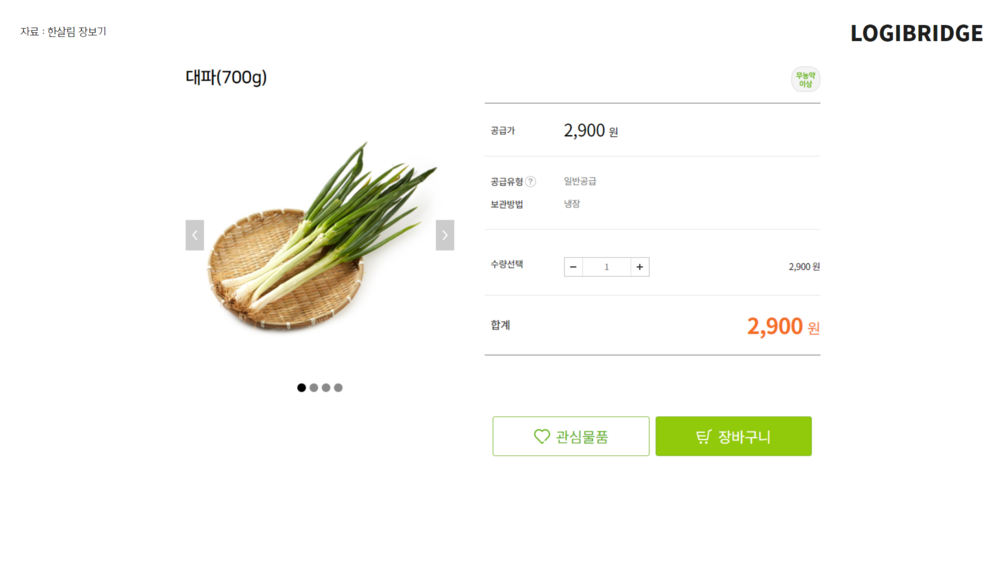 대파 700g 2900원에 판매하는 '한살림'입니다. 심지어 무농약입니다.