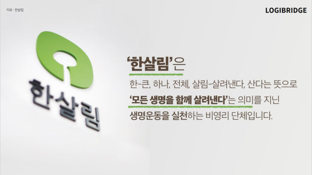 한살림 측은 '모든 생명을 함께 살려낸다'는 의미를 지닌 생명 운동을 실천하는 비영리 단체라고 자신들을 소개하고 있습니다.