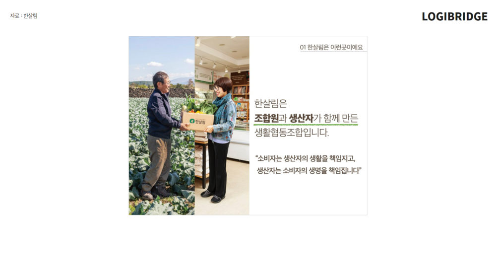 마켓컬리 등에 비해 한살림은 상대적으로 잘 알려지지도, 부각이 되지도 않지만, 마켓컬리 훨씬 이 전부터 유통 직거래 형태의 유통 혁신을 일찍부터 만들어 왔습니다.