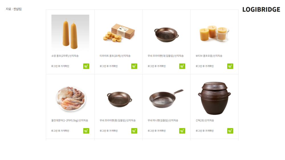 조합원으로 로그인을 하지 않으면 상품의 판매 가격이 공개되지 않는 품목도 꽤 많습니다.