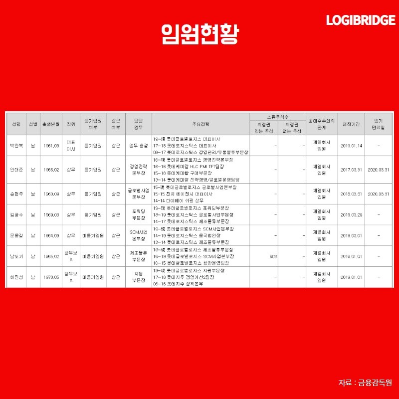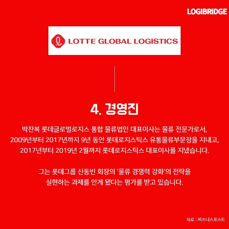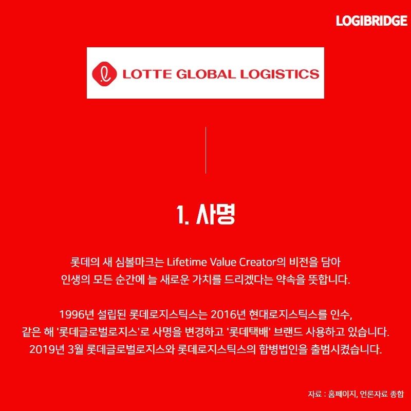 2019년 3월 롯데글로벌로지스와 롯데로지스틱스의 합병법인을 출범시켰습니다.