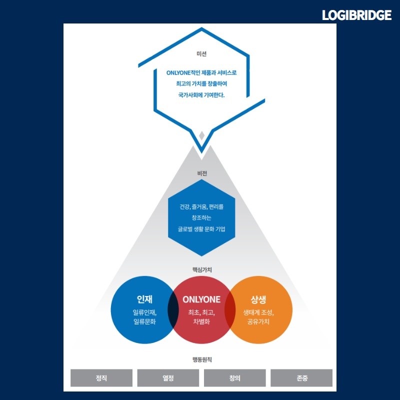 CJ의 세가지 컬러는 건강, 즐거움, 편리를 상징합니다.