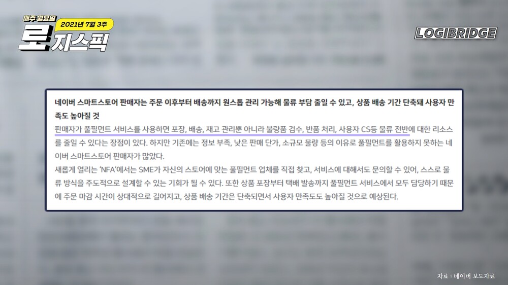 한 주 간 있었던 주요 물류 뉴스를 선정해 정리하는 '로지스픽' 순서입니다.