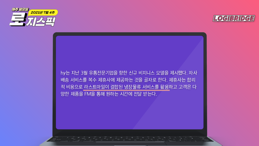 hy 측은 자사가 보유한 라스트마일 냉장물류 인프라를 활용해 물류 대행 서비스를 제공하겠다는 전략을 수립했는데요.
