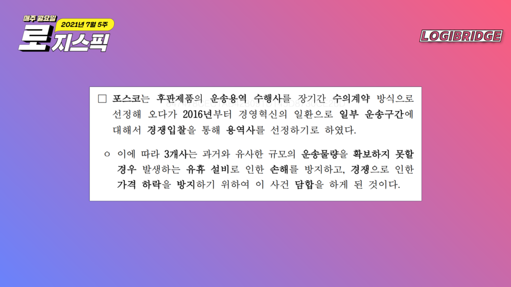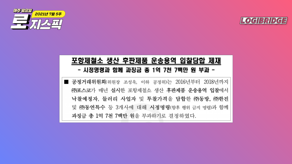 한 주 간 있었던 주요 물류 뉴스를 요약하는 로지스픽 코너입니다.