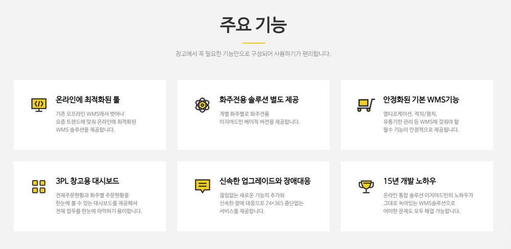 물류창고를 고도화하고 싶으신가요?이지어드민의 16년 노하우가 집약된 이지WMS가완벽하게 해결해 드립니다.