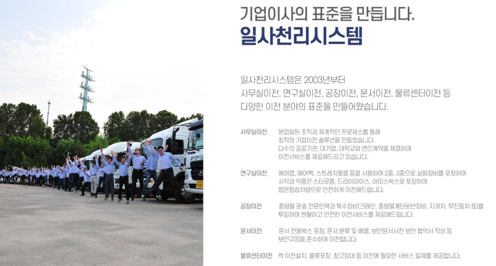 2016년이후 매년 만건이상의 기업이사 작업을 수행하는 명실상부 대한민국 최고의 기업이전, 사무실이사 전문업체입니다.