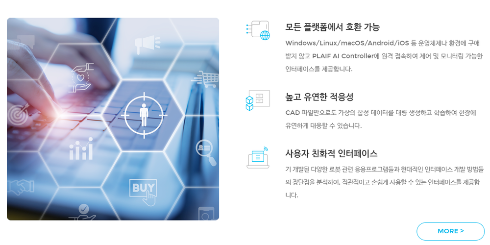 플라잎의 솔루션은 딥러닝과 강화학습 기반으로 다양한 환경에서 로봇 스스로 인지, 판단, 제어하게 합니다.