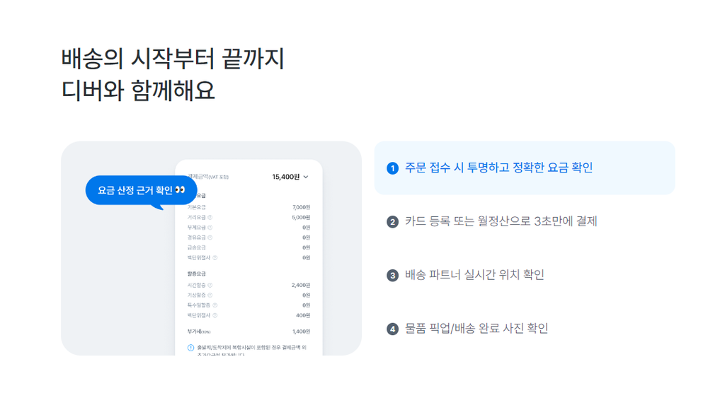 디버는 간편하게 웹/앱을 통해 배송 접수가 가능한 B2B 플랫폼입니다.