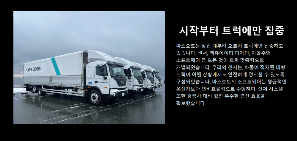 마스오토는 창업 때부터 트럭에만 집중하고 있습니다.
