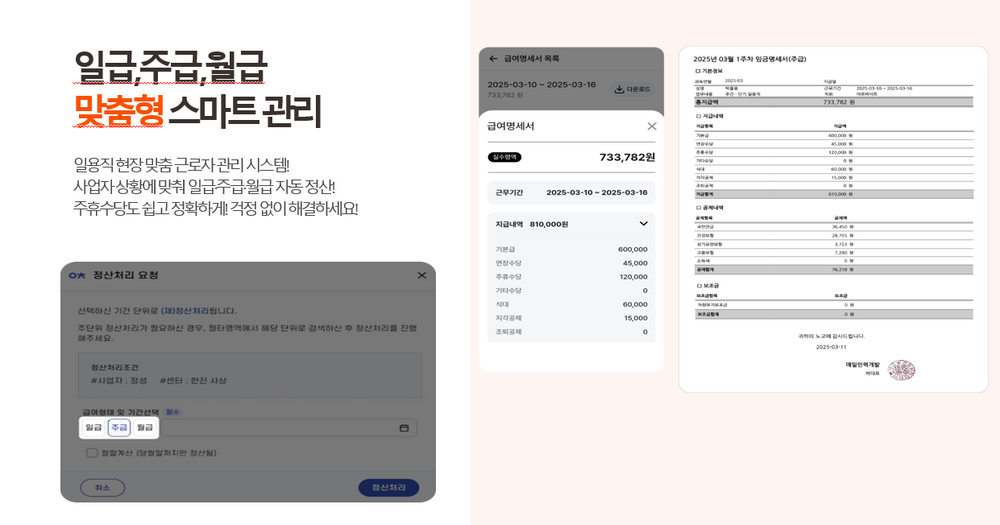 일용직은 상용직과 다릅니다. 고용 방식도, 유지 방식도, 관리 방식도 모두 다릅니다. 기존 HR 프로그램은 상용직 중심이라 일용직을 제대로 반영하지 못한다는 한계를 느꼈고, 이를 해결하기 위해 일용직에 꼭 맞는 솔루션을 고민했습니다.