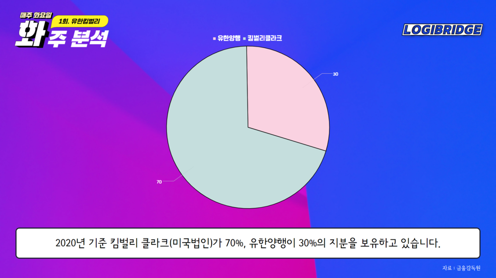 2020년 기준 킴벌리 클라크(미국법인)가 70%, 유한양행이 30%의 지분을 보유하고 있습니다.