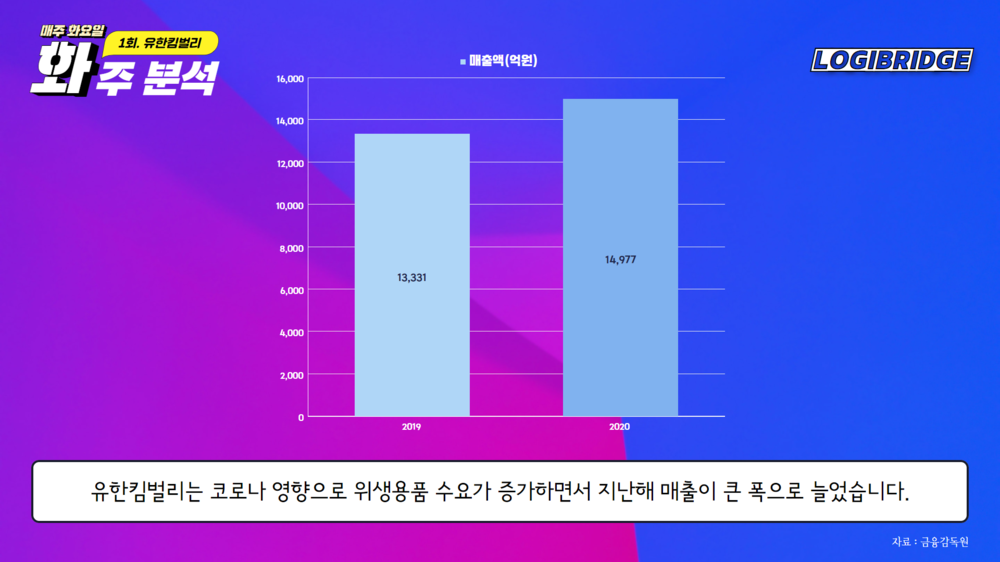 2019년 매출액은 1조3331억원에서 2020년 1조4977조원으로 12.3% 증가했는데요.