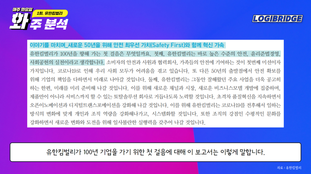하지만 성장이 둔화되는 지금 상황을 보면, 향후 50년 유한킴벌리가 어떤 전략을 수립하며, 어떻게 성장해 나갈지 궁금하지 않을 수 없습니다.