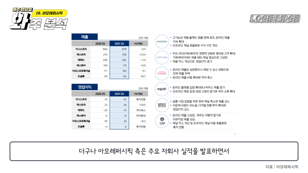 더구나 아모레퍼시픽 측은 주요 자회사 실적을 발표하면서, 온라인 매출 비중이 높아지는 반면 오프라인 매장은 효율화 또는 축소되고 있음을 전했습니다.
