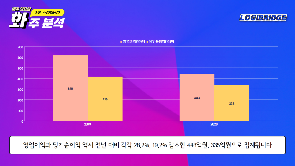 영업이익과 당기순이익 역시 전년 대비 각각 28.2%, 19.2% 감소한 443억원, 335억원으로 집계됩니다.