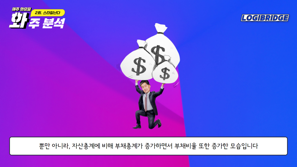 뿐만 아니라, 자산총계에 비해 부채총계가 증가하면서 부채비율 또한 증가한 모습입니다.