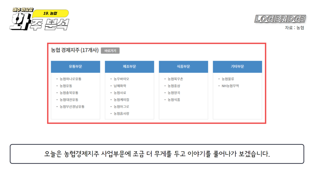 오늘은 농협경제지주 사업부문에 조금 더 무게를 두고 이야기를 풀어나가 보겠습니다.