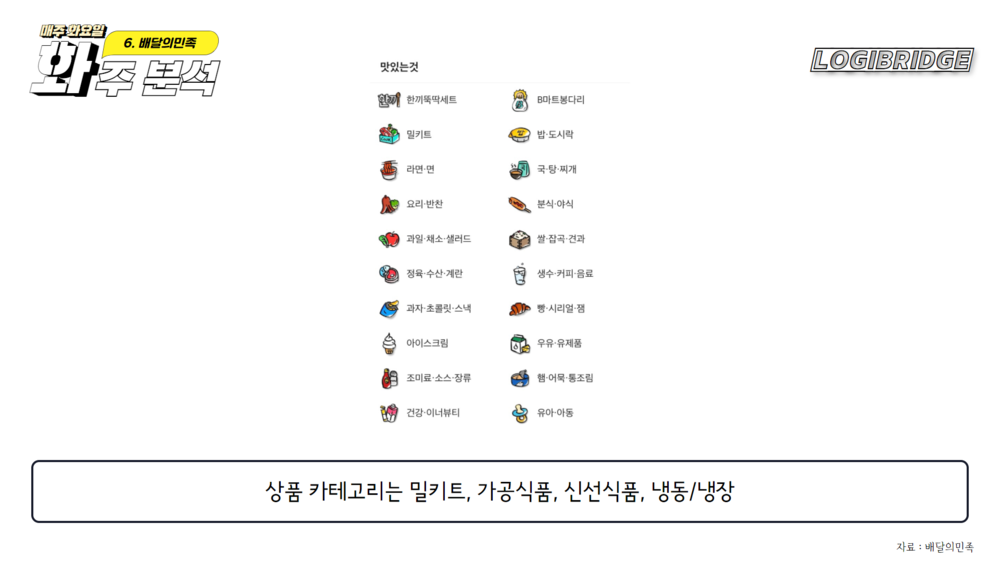 배달의민족 관계자에 따르면 SKU(취급품목수)는 약 7,000개이며, 도심의 물류 거점이 지속해서 증가하는 추이를 보면, 각 물류 거점에 따라 보관하는 상품의 종류와 성격이 상이할 것으로 추측이 됩니다.