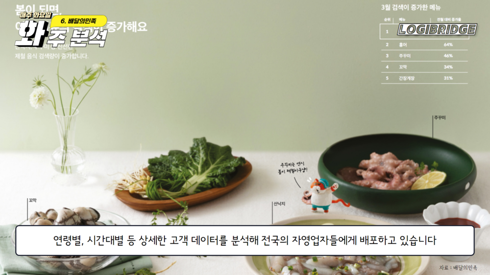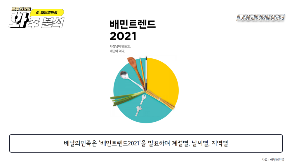 배달의민족은 '배민트렌드2021'을 발표하며 계절별, 날씨별, 지역별, 연령별, 시간대별 등 상세한 고객 데이터를 분석해 전국의 자영업자들에게 배포하고 있는데요.