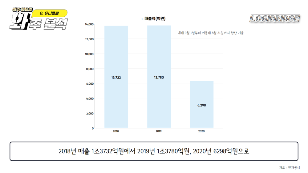 2018년 매출 1조3732억원에서 2019년 1조3780억원, 2020년 6298억원으로 불매 운동 이후 매출이 급격히 쪼그라 들었습니다.
