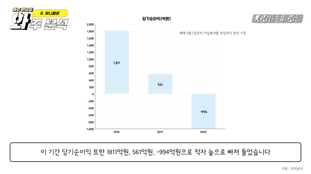 이 기간 당기순이익 또한 1811억원, 561억원, -994억원으로 적자 늪으로 빠져 들었습니다.