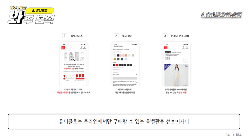 유니클로는 온라인에서만 구매할 수 있는 특별관을 선보이거나 상품의 종류와 사이즈 등을 빠르게 늘려 나가고 있습니다.